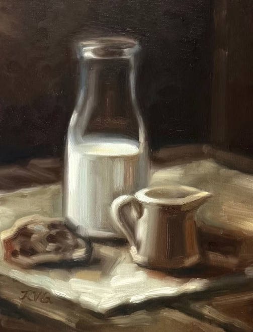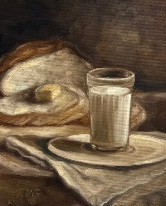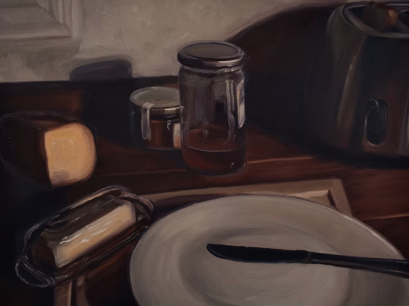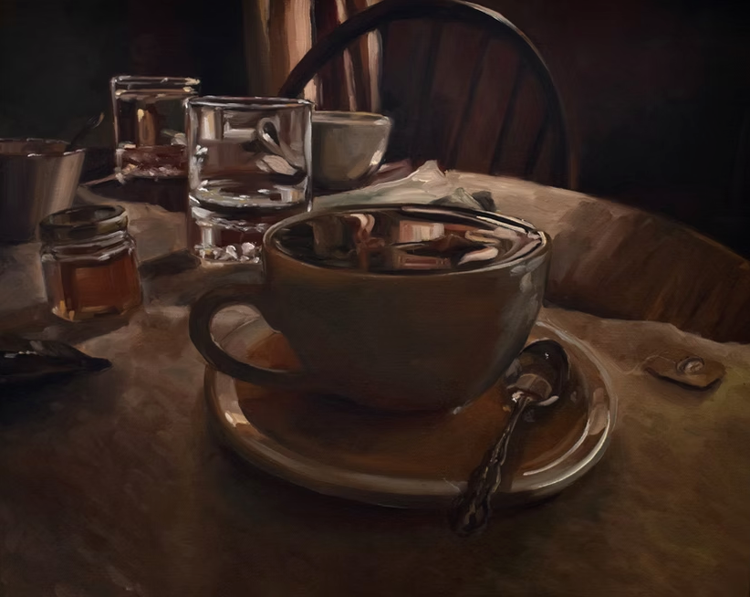 This painting reflects on grief and loss, and how it reshapes our daily rituals. Still keeping them in our hearts and in our conversations, keeping their spirit alive.